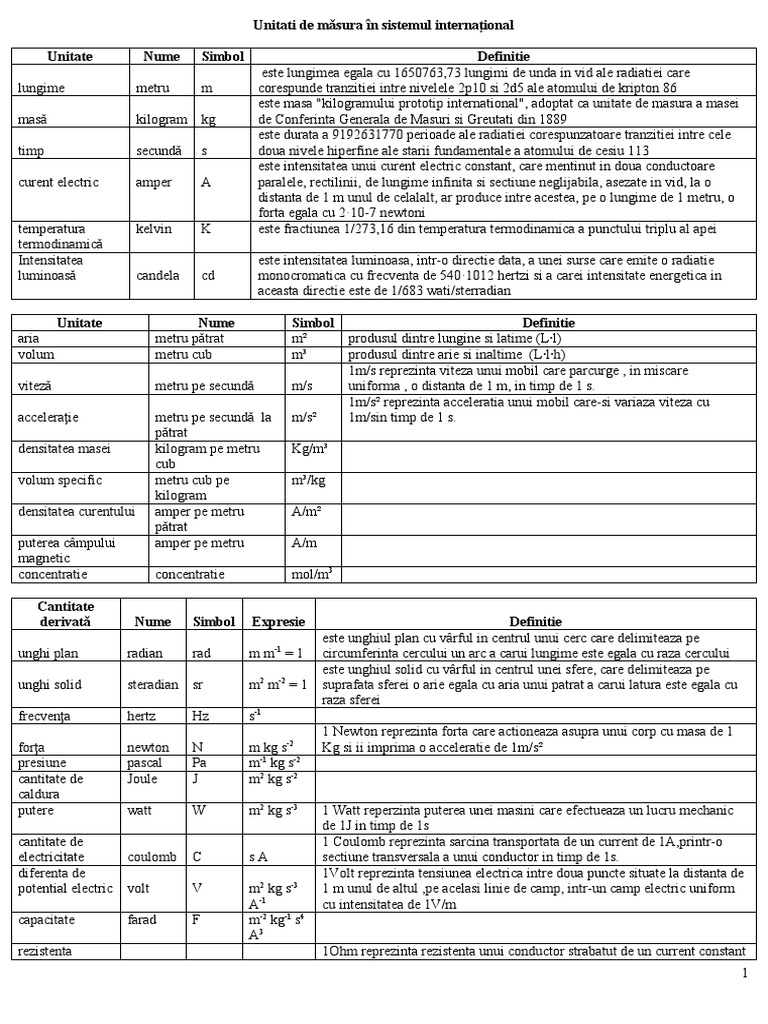 1 Unitati Si Prefixe Si Source from : https://www.yumpu.com/ro/document/view/30522968/1-unitati-si-prefixe-si Mărimi fundamentale ale sistemului internaţional (si). Trimis de aurel din 27 martie 2006. Sistemul internațional de unități ( si , prescurtat din francezul système international (d'unités) ) este forma modernă a sistemului metric. Bun de tipar 29.12.03 hârtie ofset. Unitati de masura in sistemul international.