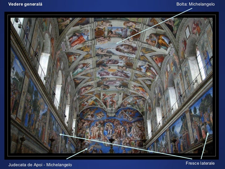 vizita?i articolul complet aici : https://www.wga.hu/html/m/michelan/3sistina/lastjudg/4lastjud.html Michelangelo ce reprezinta pictura pictura reprezinta sfarsitul lumii si contine in jur de 300 de personaje. Judecata de apoi (în italiană : O artă lucrare unică, o interpretare nouă, personală a genezei, care de.