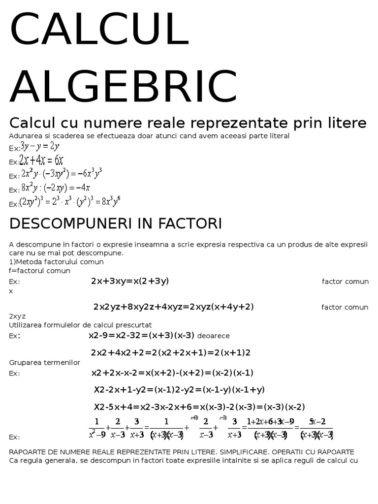 Savesave formule de calcul prescurtat descompuneri in facto.
