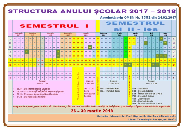 1/2011, cu modificärile completärile ulterioare, în temeiul prevederilor din hotärârea guvernului nr. Semestrul i are 19 săptămâni dispuse în perioada 11 septembrie 2017 2 februarie 2018 astfel. Structura anului scolar 2017 2018 tabel;