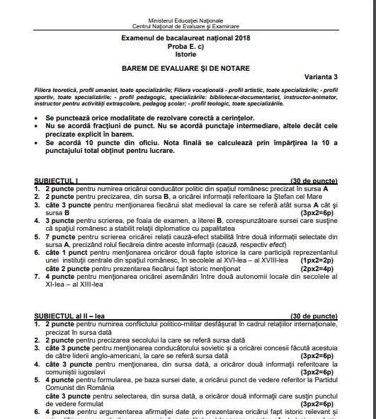 Aceștia au avut la dispoziție 3 ore pentru a rezolva subiectele. Cele mai interesante stiri despre bareme simulare bac 2019 istorie. Examenul este organizat în 802 centre.